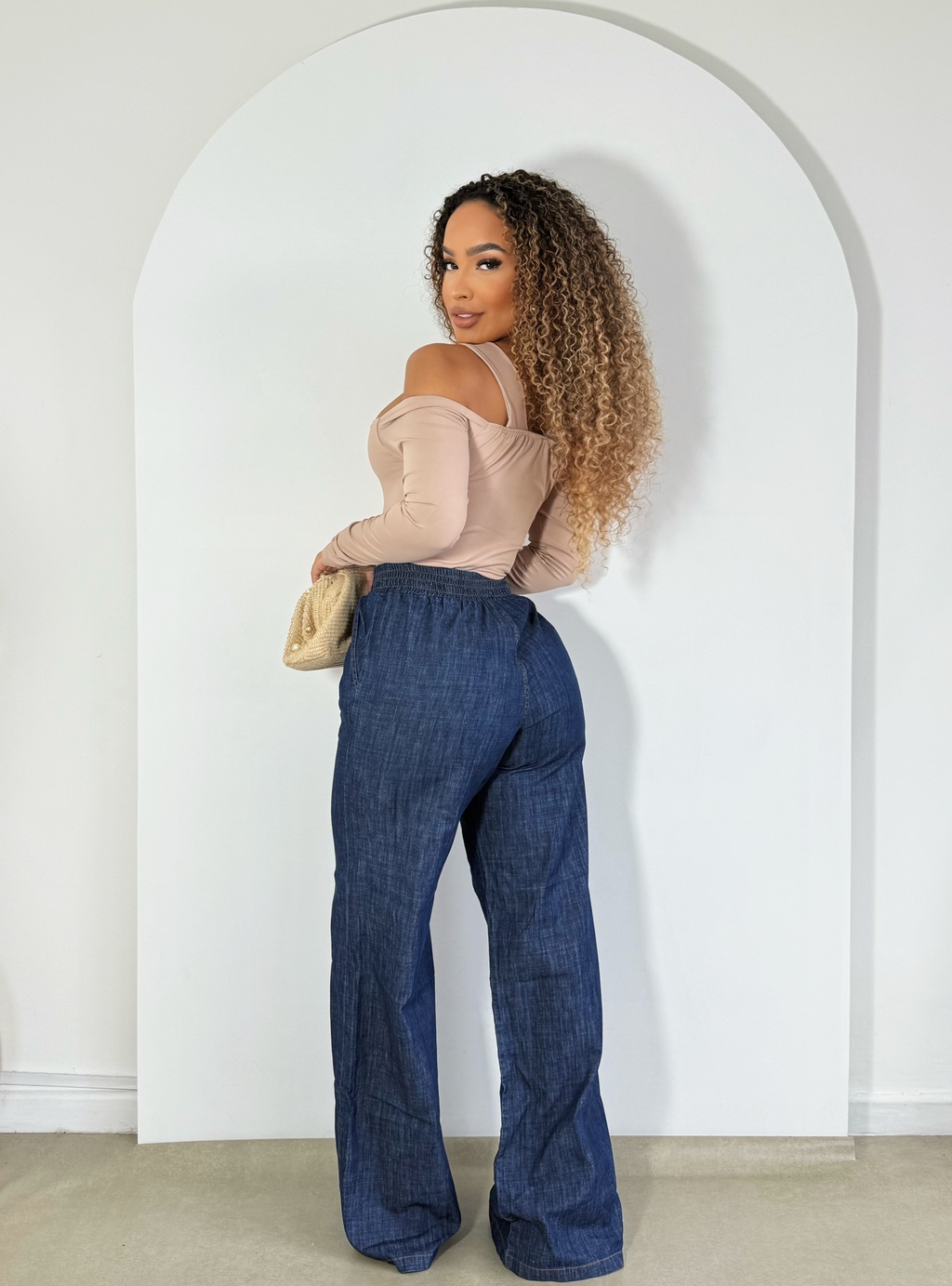 Uma wide leg sempre é essencial no guarda-roupa! Em tecido molinho, confortável e sem elastano. Possui a barra com elástico na cintura. Ela é aquela básica necessária pra qualquer composição. A modelo usou a P.